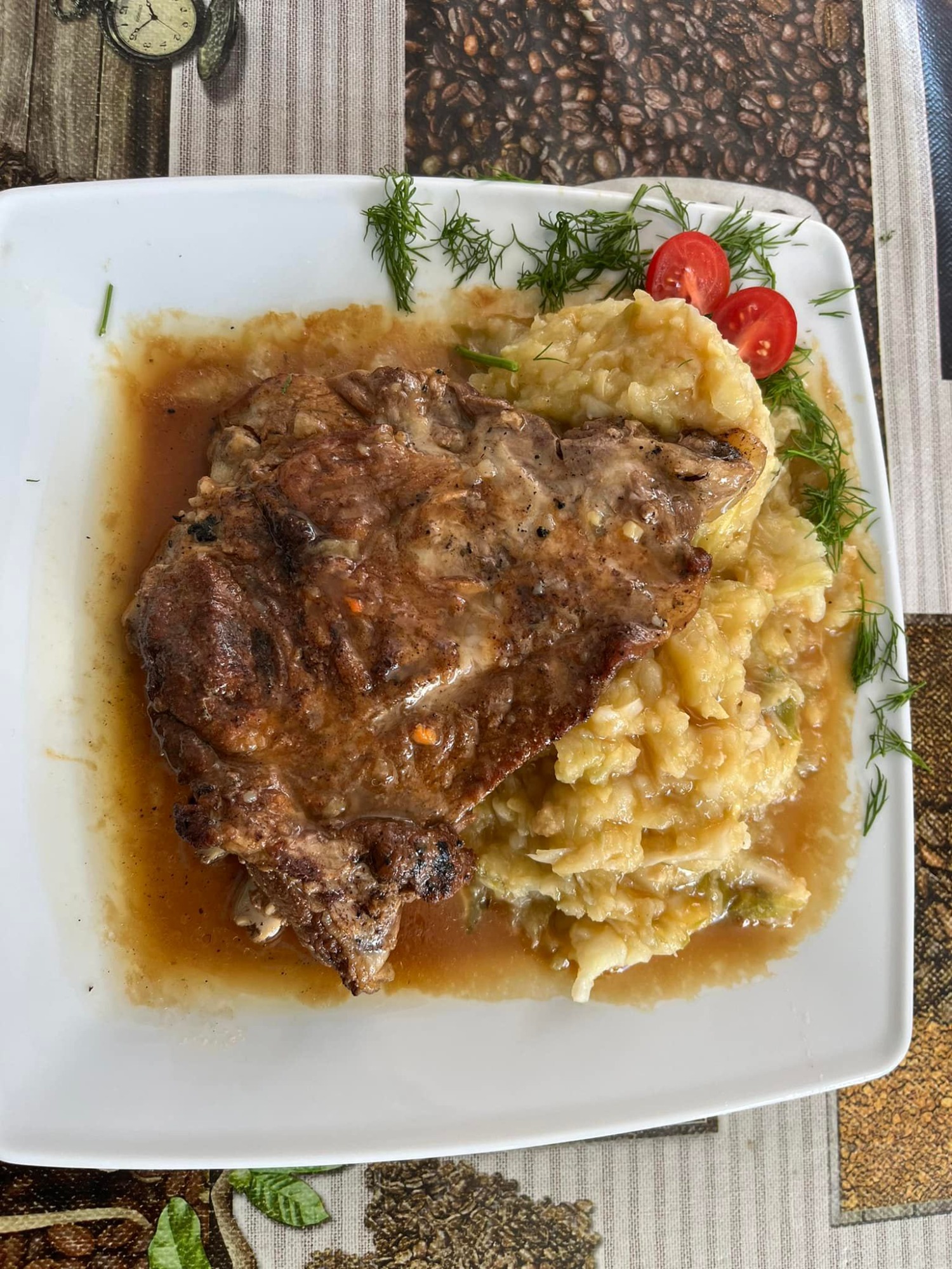 dodatki do wyboru :ciaperkapusta,kartofelki pieczone,frytki,kartofelki ,kluski ,kapusta zasmażana